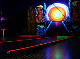 Schwarzlicht Minigolf und SpielGolf oder klassisches Minigolf für Kunden ausgearbeitet.