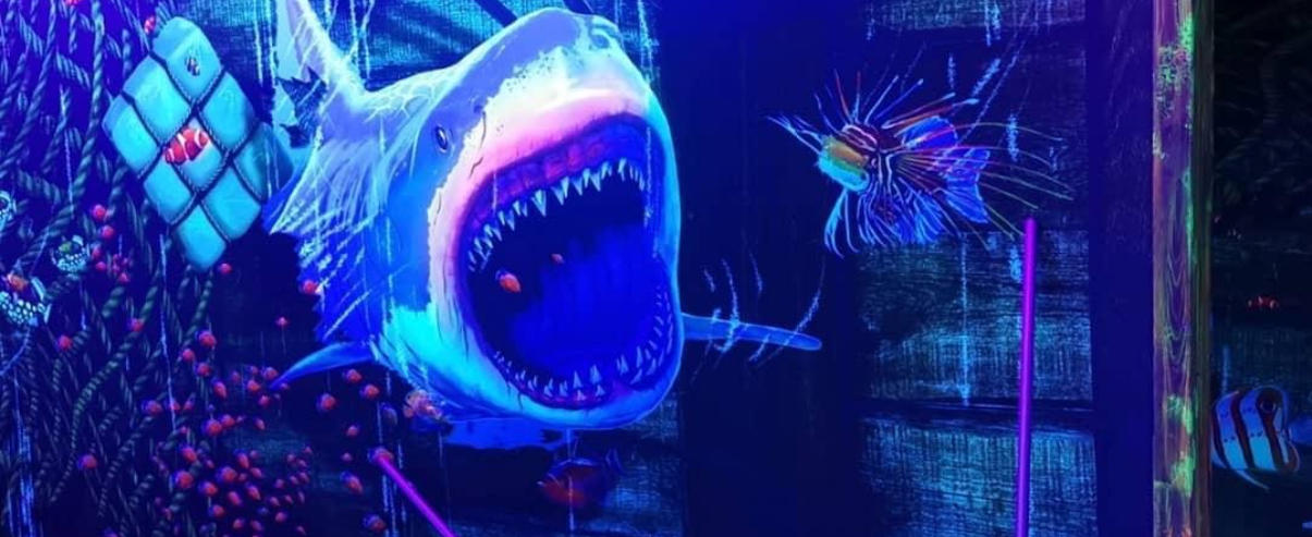 so richtig herausfordern und diese Schwarzlicht-Minigolf Anlage