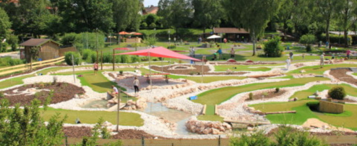 Minigolf Bahnen, als auch abenteuerliche AdventureGolf Bahnen bespielt werden können.