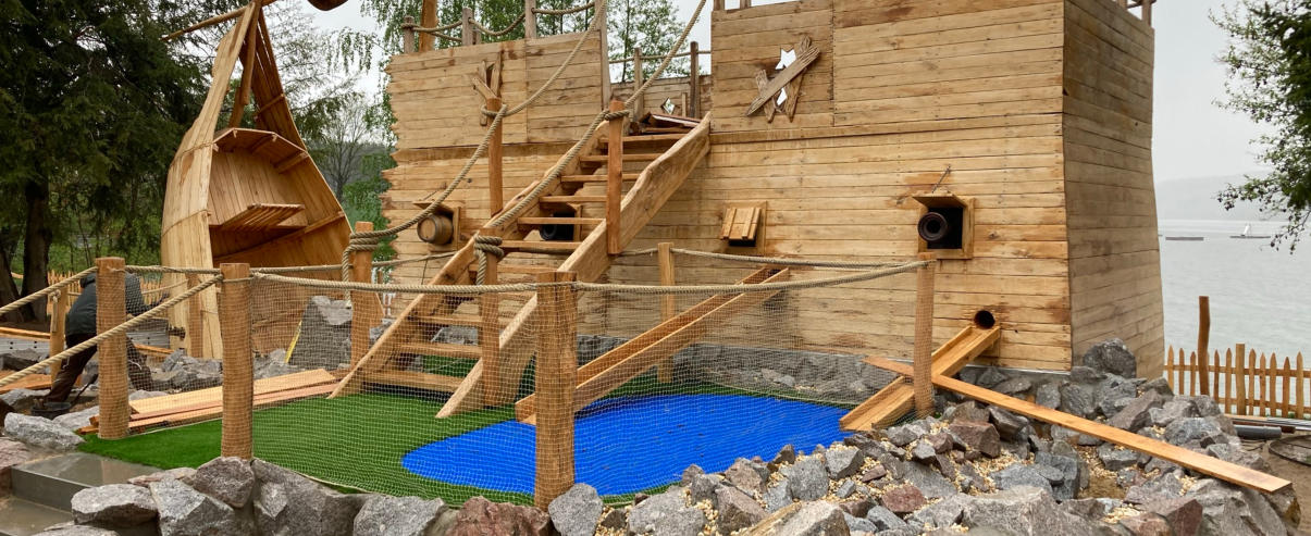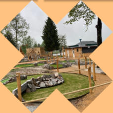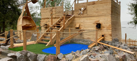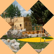 Abenteuer-Minigolfplatz mit Kinderspielbereich,