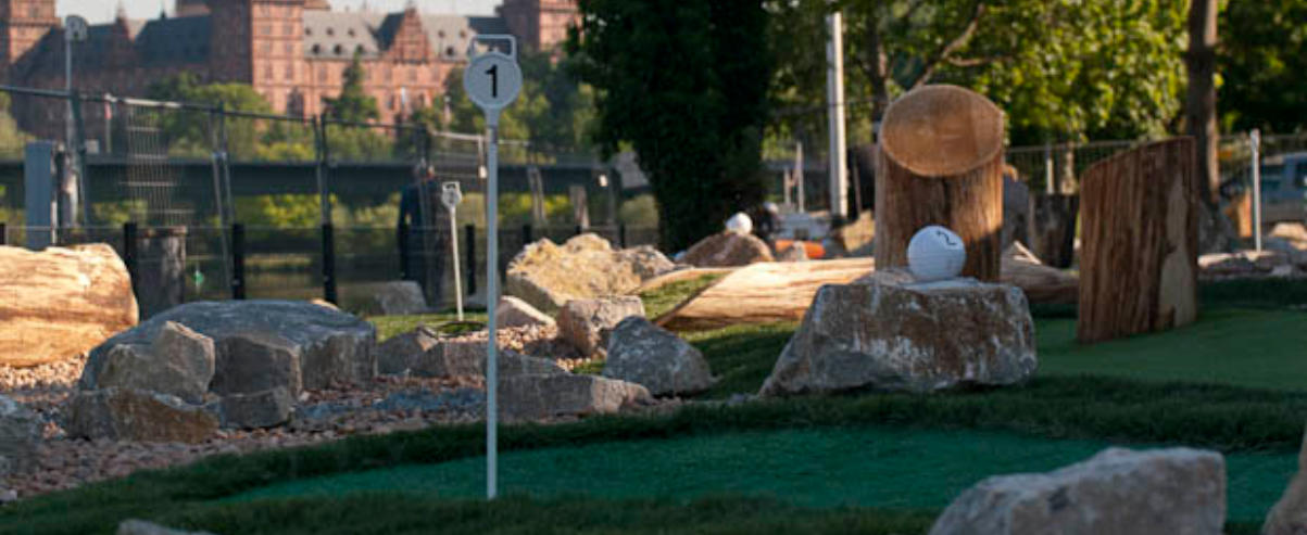 MAIN GOLF heißt die neue Minigolf-Anlage am Floßhafen und dem schönen Aschaffenburger Mainufer.