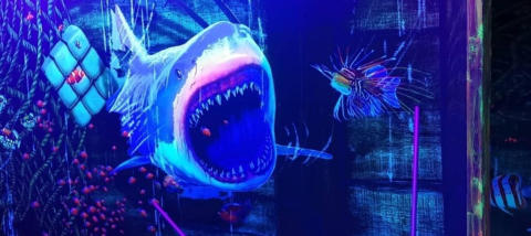 so richtig herausfordern und diese Schwarzlicht-Minigolf Anlage