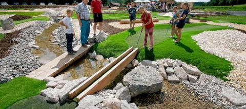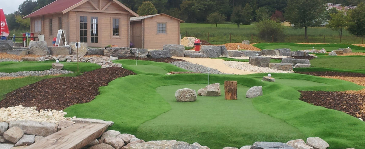 Golfwelten Inh. Christoph Hartmann Im Gaiern 6 71093 Weil im Schönbuch Tel. 01577-9439221 info@golfwelten-schoenbuch.de Abenteuergolf ist ein Erlebnis für die ganze Familie Adventure Golf is an experience for the whole family Golfwelten in Weil im Schönbuch bietet Ihnen auf ca. 7.000m² 18 einzigartige Golfbahnen mit Spielwegen zwischen 13 und 40 Metern. Neben etwas Glück benötigen die Spieler vor allem eine ausgeklügelte Taktik, um den Ball mit möglichst wenig Schlägen einzulochen. Gespielt wird auf Kunstrasen mit einem Golfputter. Dieser kann ausgeliehen werden und ist im Eintrittspreis beinhaltet. Neben Steinfeldern, Sandbunker, Tunneln oder Baumstämmen sorgt ein Wasserlauf für abwechslungsreiche Hindernisse, die das Abenteuergolfen zu einem einzigartigen Erlebnis werden lassen. Golfkenntnisse werden nicht benötigt. Im Kiosk erhalten Sie kalte und warme Getränke, Eis, Schokoriegel, Muffins und am Wochenende kleine Snacks, wie Schnitzel- oder Leberkäsweckle. Für den größeren Hunger bietet die nahegelegene Weiler Hütte ein umfassendes Speisenangebot. Viel Spaß beim Abenteuergolfen!
